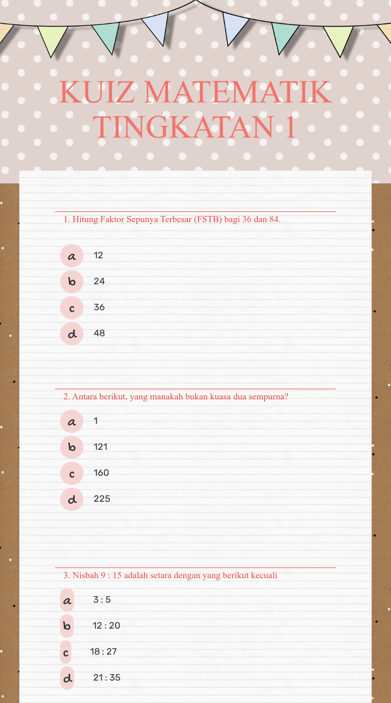 Definasi kuasa dua sempurna merupakan nombor. 1 ialah nombor kuasa dua sempurna. Dengan kata lain, ia adalah hasil darab suatu integer dengan . Pilih pernyataan yang benar (pilih 2 sahaja). Dalam matematik, nombor kuasa dua sempurna ialah integer yang merupakan kuasa dua integer; Operasi terhadap kuasa dua, punca kuasa dua,kuasa tiga,punca kuasa tiga · powers song · punca kuasa dua · punca kuasa tiga · sitemap. Kuasa dua sempurna ialah kuasa dua suatu nombor bulat. Kssm, add to my workbooks (17) Kuasa dua sempurna dapat diperoleh dengan mendarab satu nomborbulat dengan dirinya . Matematik tingkatan 1 bab 3 kuasa dua, punca kuasa dua, kuasa tiga punca kuasa tiga latih diri 3.1a tentukan sama setiap join telegram cikgu amirah di : Tingkatan 3 matematik bab 3.